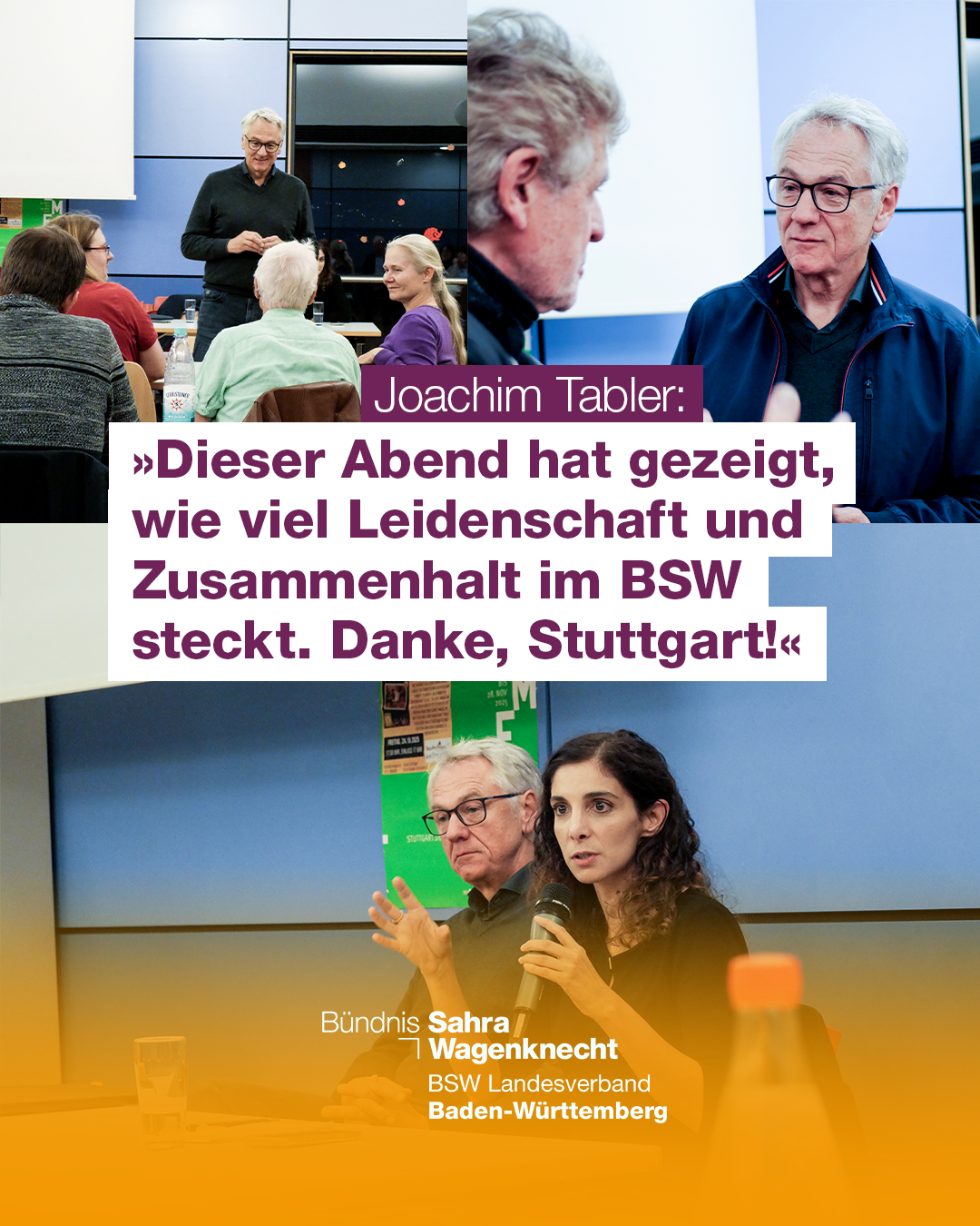 „Dieser Abend hat gezeigt, wie viel Leidenschaft und Zusammenhalt im BSW steckt. Danke, Stuttgart! Ich freue mich auf viele weitere Begegnungen – und darauf, gemeinsam mit euch die Politik in diesem Land vernünftiger, gerechter und friedlicher zu gestalten.“